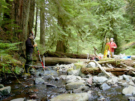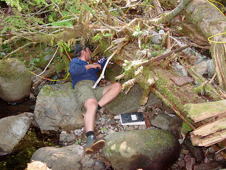 The field team at HJ Andrews, OR, from left Nigel Crook (HMF Geophysics – Stanford University), David Robinson (HMF Geophysics – Stanford University) and Jay Zarnetske (PhD student – Oregon State University). |
